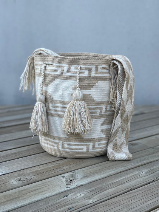 Carriel Wayuu – Colección Arena Viva 🤍🌾✨ – (26x21 cm)