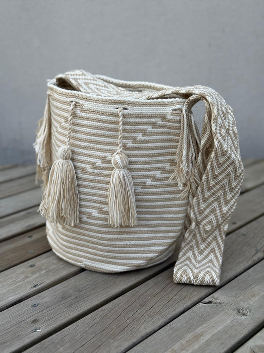 Carriel Wayuu – Colección Arena Viva 🤍🌾✨ – (26x21 cm)