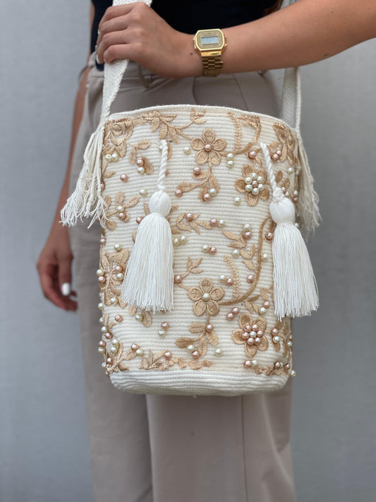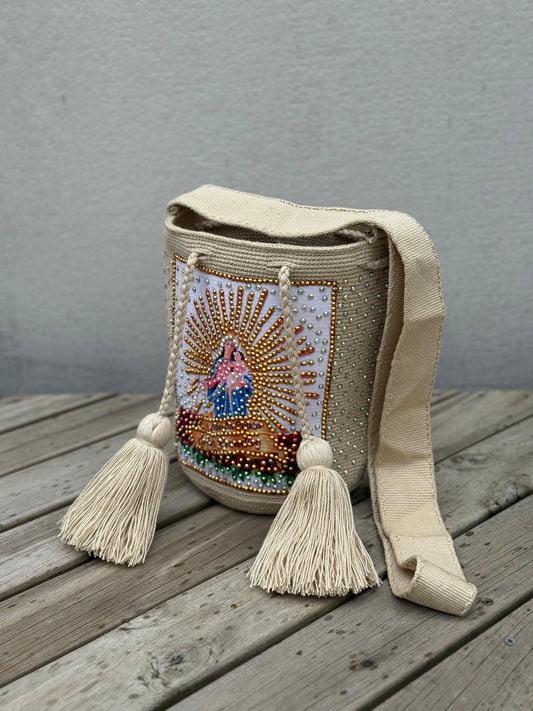 Mochila Wayuu – Colección Virgen Perlada ✨🙏 – (22x20)