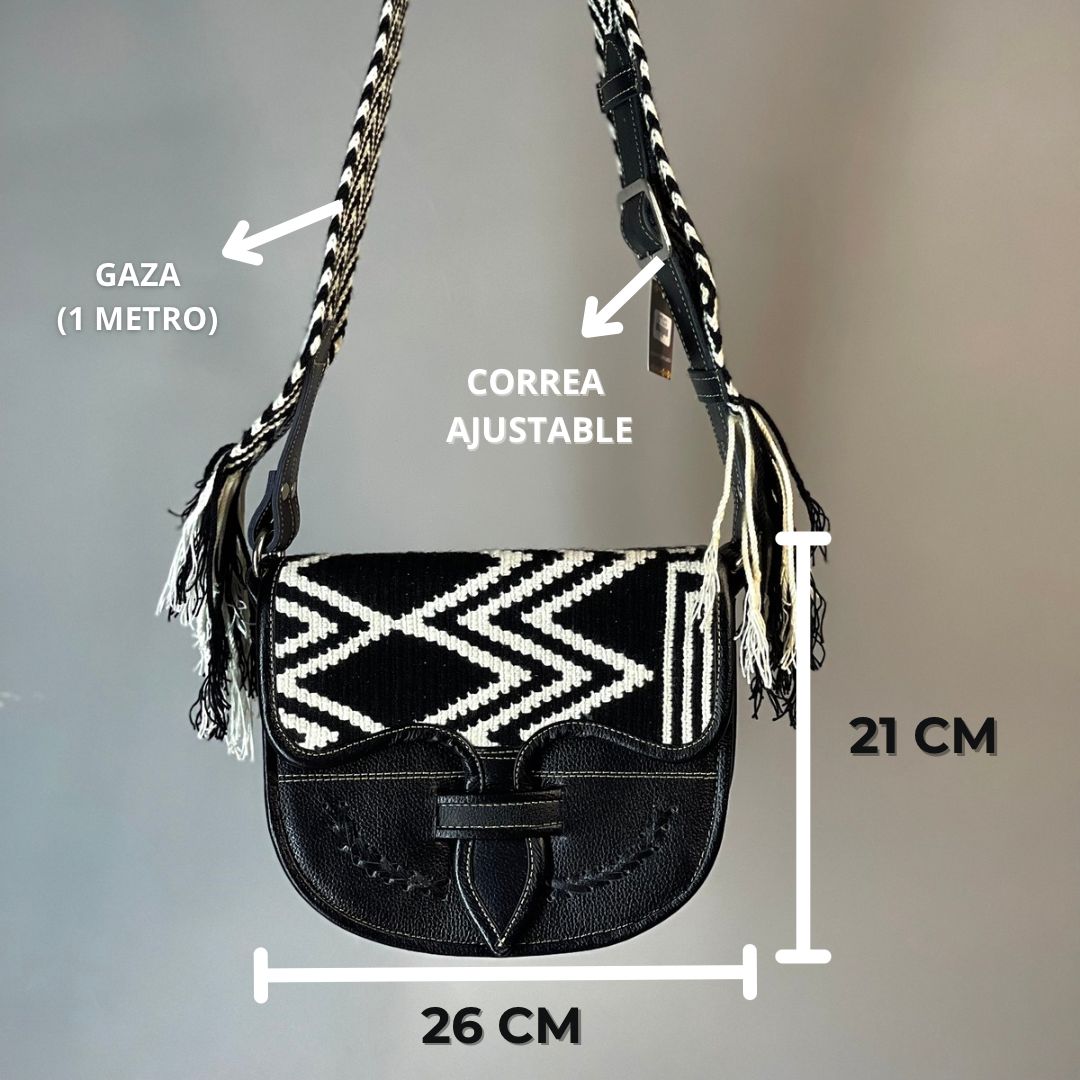 - Calidad Artesanal: Hecho con cuero y tejido Wayuu, cada pieza asegura durabilidad y un acabado impecable.