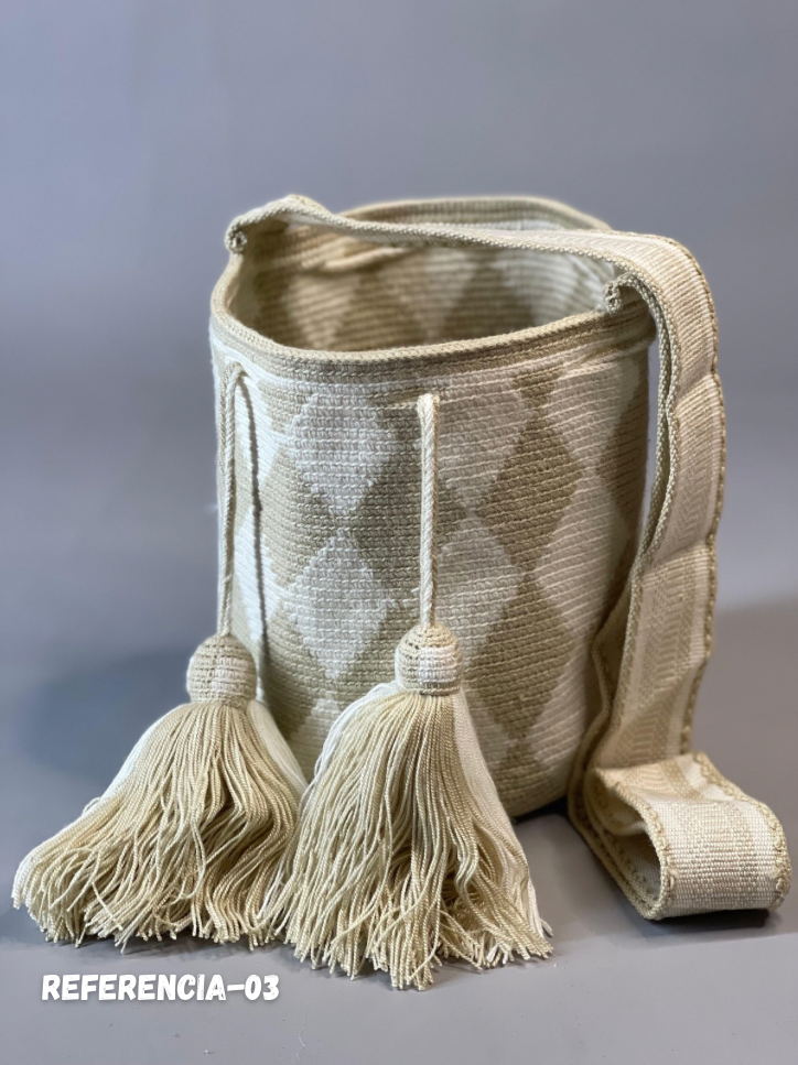 Material Principal: Tejido Wayuu elaborado con hilo de algodón de alta calidad, resistente y suave al tacto.